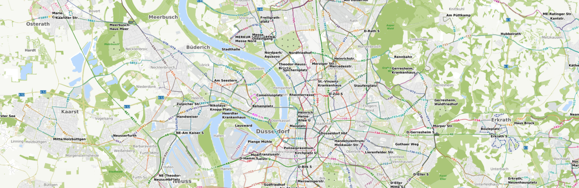 Die Buslinie 722 bringt Sie in knapp 30 Minuten vom Düsseldorfer Hauptbahnhof zum Kongresszentrum.